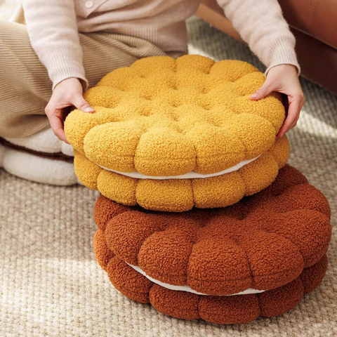 وسادة كرتونية قطيفة فائقة اللطف دائرية سميكة قابلة للإزالة وقابلة للغسل والبيض المحمص